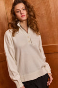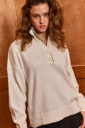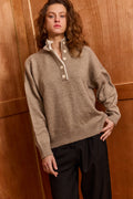 Slip into effortless style with this oversized polo sweater that's as cozy as it is chic. Crafted from incredibly soft fabric, it drapes beautifully in an oversized silhouette perfect for lounging or casual outings. The charming two-tone collar detail and button closure add a playful touch that elevates your everyday look. Whether you're keeping it relaxed or dressing it up, this sweater delivers comfort without compromising on style.