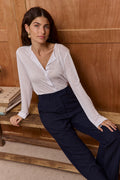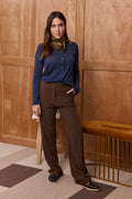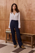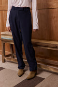 Our Morison High-Rise Trousers offer a comfortable and stylish option, with a wide leg cut. The high rise and side seam pockets provide a flattering fit and functional convenience. With belt loops, a zip fly, and hook and bar closure, these trousers are both fashionable and practical. Made from a blend of 70% Polly, 3% Lycra, and 27% Viscose for ultimate comfort and flexibility. model wear size S