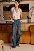 The Mom Blue High-Rise is crafted from high-quality denim in a dark blue shade, providing a classic and versatile addition to any wardrobe. The chic design offers a timeless aesthetic, making it an essential choice for daily wear. This garment combines functionality and style, ensuring lasting appeal.