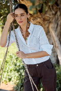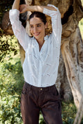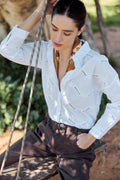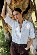A beautiful festive white shirt elevated by delicate embroidery detailing. Crafted from 100% cotton with a relaxed fit that moves with you, this is the perfect white shirt for any occasion. Soft, breathable, and effortlessly elegant. Model wears size S.