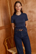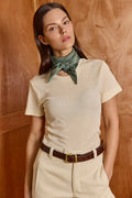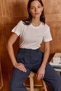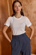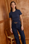 Buy now or cry later. cut in a simple boxy shape, short sleeves, crew neck - the second skin is impossible to ignore. this top is slim fit. our all times favorite lives up to its name. you'll never take it off. Model Wears Size S. 50% polyester 50% cotton.