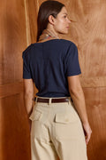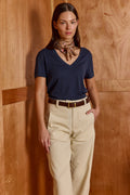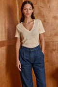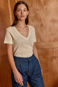 Buy now or cry later. cut in a simple boxy shape, short sleeves, classic v neck - the second skin is impossible to ignore. this top is slim fit. our all times favorite lives up to its name. you'll never take it off. Model Wears Size S. 50% polyester 50% cotton.