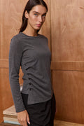 Introducing the HOS Side Note Knit – your new wardrobe essential that's as comfy as it is chic. Crafted from luxuriously soft knit fabric, this fitted beauty hugs your curves in all the right ways. The real magic? Those adorable side buttons that add instant sophistication while cinching your waist for a flattering silhouette. Effortlessly versatile, it pairs beautifully with any trousers for endless styling possibilities. Whether you're dressing up or keeping it casual, this classic piece does the heavy lifting. Model pictured in size S.
