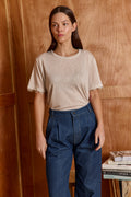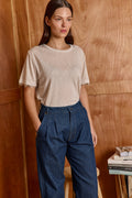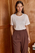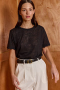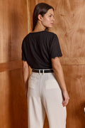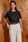 Meet your new lover, our best-seller has an unmatched quality, with a classic silhouette and a crew neckline. slightly sheer and cut in a relaxed fit. the romantic lace adds the right twist and makes this basic work AM to PM. 70% Viscose, 30% Polly. Model wears size S.