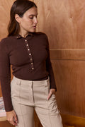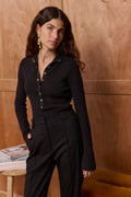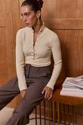 Irresistible from morning to night, The Isla Sweater is your new essential. This ribbed, fitted design hugs you in all the right ways with a flattering deep V-neck adorned with elegant golden button closures. Available in three stunning colors, it's the kind of piece that works as hard as you do—effortlessly chic whether you're heading to the office or out for the evening. Undeniably hot, undeniably yours.