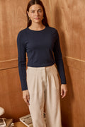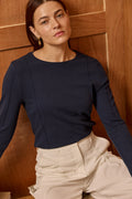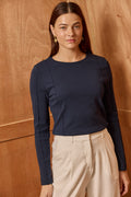 Experience elegance and comfort with The Sculpted Top. Made with high-quality cotton, this crew neck top features a unique line of sculpture that will elevate your style. The amazing fabric adds a touch of luxury to this must-have wardrobe staple. 95% Cotton 5% Lycra.