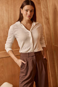 Introducing The Wonder Top, made from high-quality viscose pontieele fabric. Its button-up design offers a sleek and sophisticated look that is sure to wow. Soft and lightweight, this shirt provides comfort and style all in one. Upgrade your wardrobe with this must-have piece.